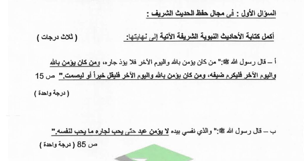 اختبار نهائي إسلامية للصف الحادي عشر الفصل الأول # مع نموذج الإجابة يتضمن اختبار نهاية الفصل الأول لمادة التربية الإسلامية للصف الحادي عشر في الكويت مجموعة من الأسئلة المتنوعة، تشمل المفاهيم الدينية والقيم الأخلاقية. يُرفَق الاختبار بنموذج إجابة توضيحي، مما يساعد الطلاب على فهم كيفية تنظيم أفكارهم وتقديم إجابات دقيقة، ويعزز استعدادهم للاختبارات النهائية بنجاح. […]