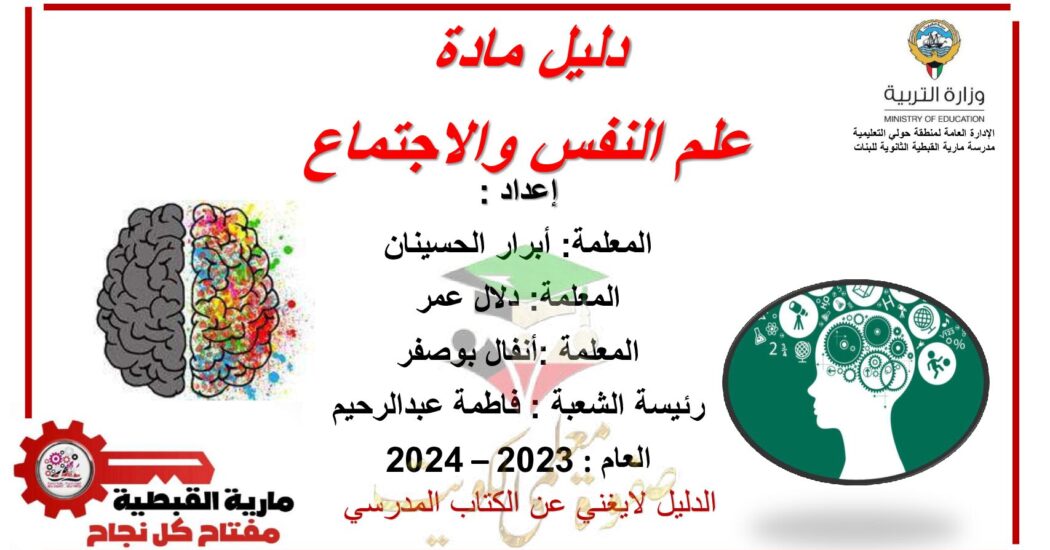 المراجعة النهائية علم نفس واجتماع للصف الحادي عشر أدبي الفصل الأول # مدرسة مارية القبطية