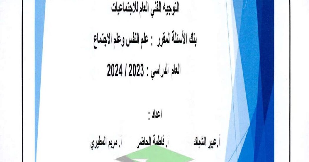 بنك اسئلة علم نفس و اجتماع للصف الحادي عشر أدبي الفصل الأول # مع نموذج الإجابة