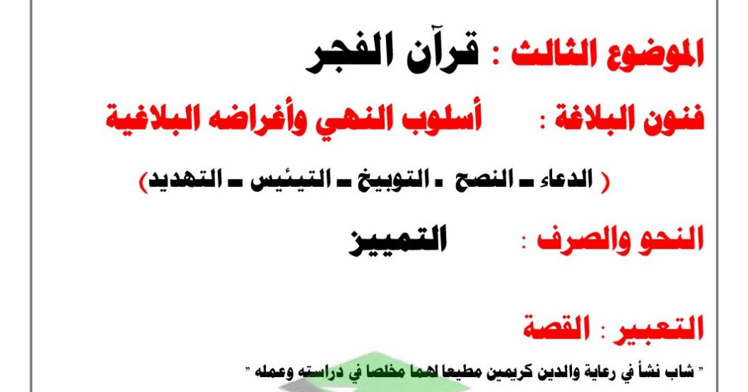 مذكرة درس (قرآن الفجر) عربي حادي عشر فصل أول #أ. حمادة ماهر