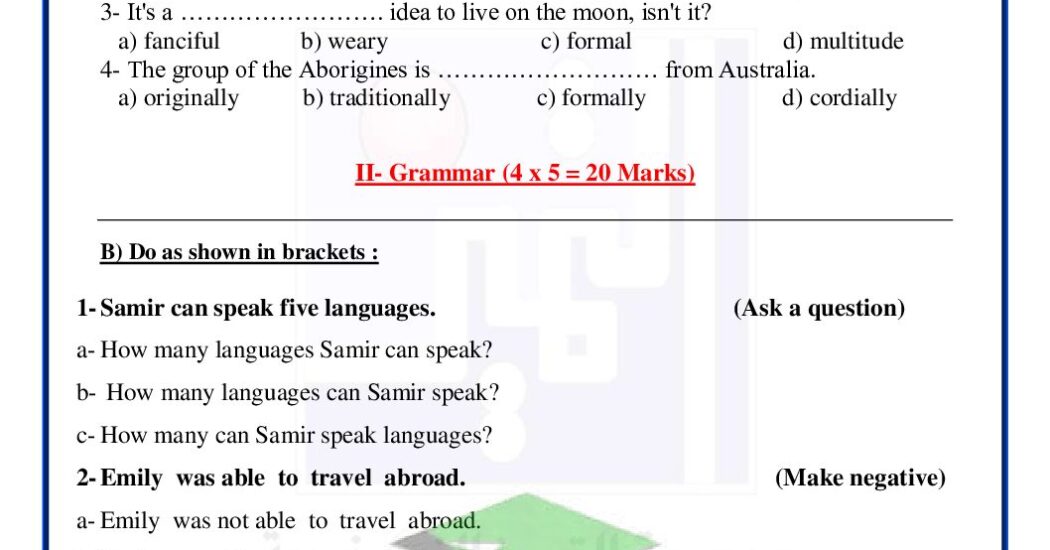 نماذج اختبار تقييمي انجليزي حادي عشر فصل أول # مدرسة التميز النموذجية نماذج الاختبارات التقييمية للغة الإنجليزية في الصف الحادي عشر بفصل الأول في مدرسة التميز النموذجية بالكويت تشمل مجموعة متنوعة من الأسئلة التي تتناول المهارات الأساسية: القراءة، الكتابة، والاستماع. تهدف هذه النماذج إلى تعزيز فهم الطلاب للمادة وتحضيرهم بشكل جيد للامتحانات النهائية من خلال […]