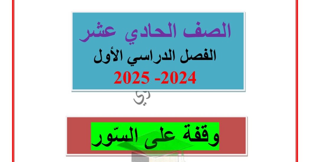 مذكرة العشماوي درس (وقفة على السور) عربي حادي عشر فصل أول قد يهمك: نموذج اختبار قصير (2) فرنسي حادي عشر أدبي فصل أول معلومة مفيدة: الصف الحادي عشر أدبي - التاريخ الإسلامي -أعمال النبي قبل البعثة