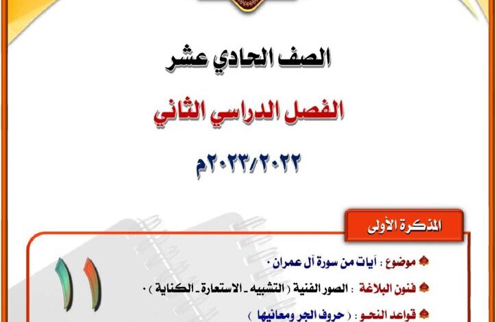 لغة عربية || مذكرة المختار موضوع سورة آل عمران حادي عشر || فصل ثاني