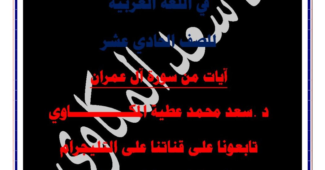 لغة عربية || صف حادي عشر || آيات من سورة آل عمران || الفصل الثاني الدكتور سعد المكاوي لتدريس اللغة العربية قد يهمك: صف حادي عشر || إجابة بنك أسئلة الأحياء || الفصل الثاني