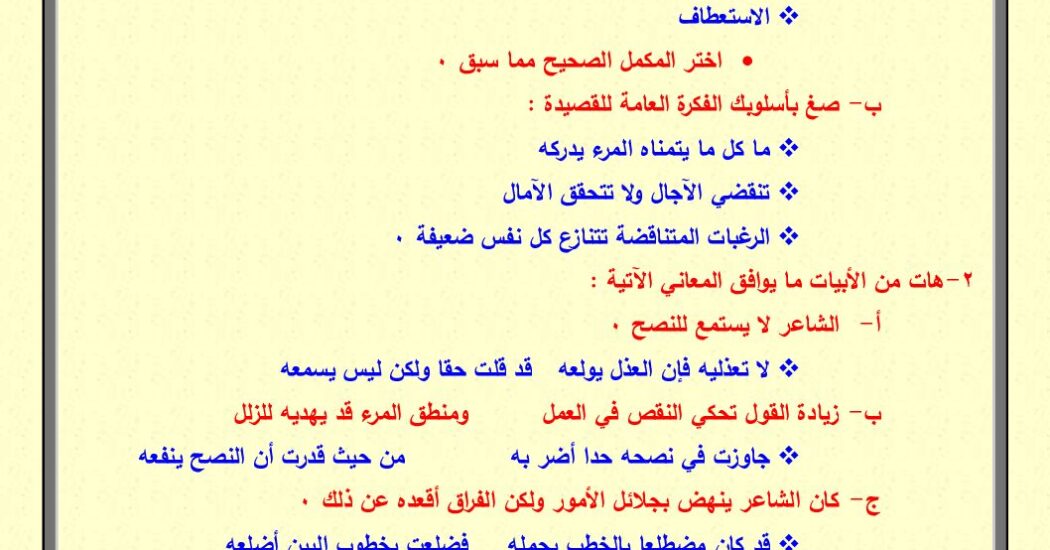 لغة عربية اجابة الكتاب المدرسي كامل ثاني عشر الفصل الاول قد يهمك: لغة عربية || اجابة الكتاب المدرسي || ثاني عشر || لا تعذليه || الفصل الاول