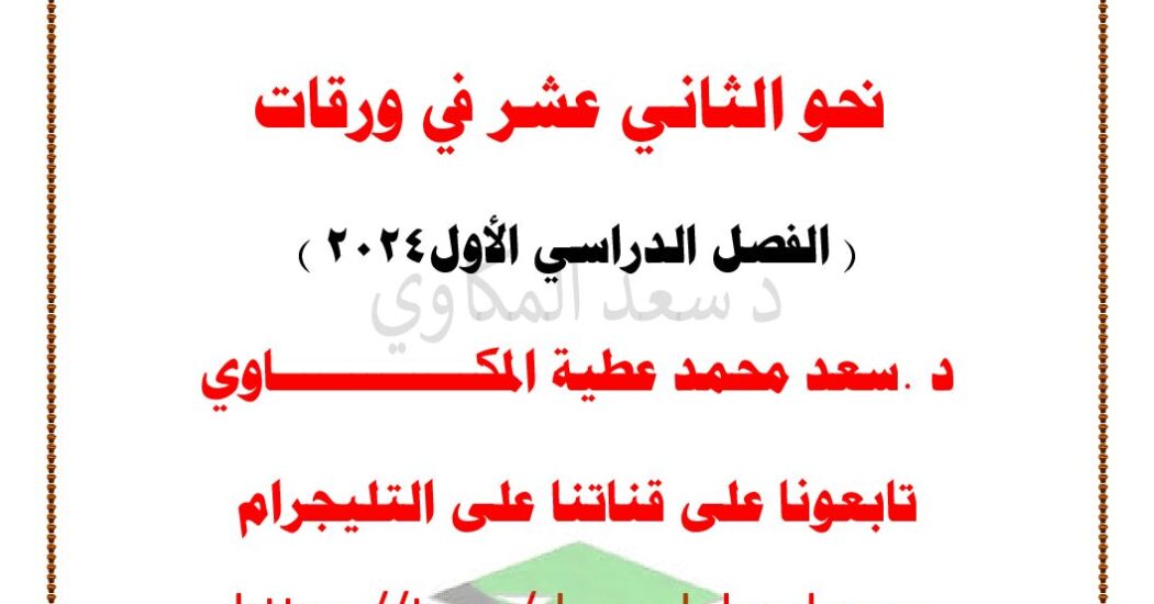 ملخص النحو في صفحات للصف الثاني عشر القصل الأول
