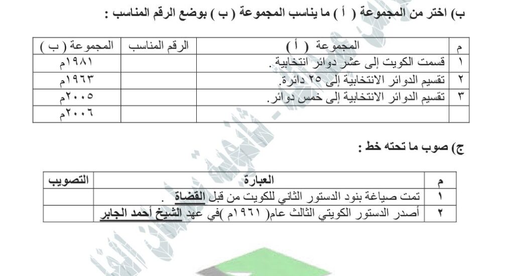 نماذج اختبارات دستور للصف الثاني عشر الفصل الأول # ثانوية سلمان الفارسي