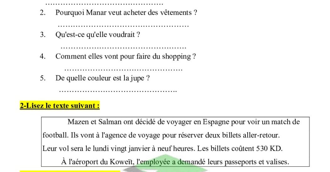 نموذج اختبار ثاني قصير فرنسي ثاني عشر أدبي فصل أول #غير محلول