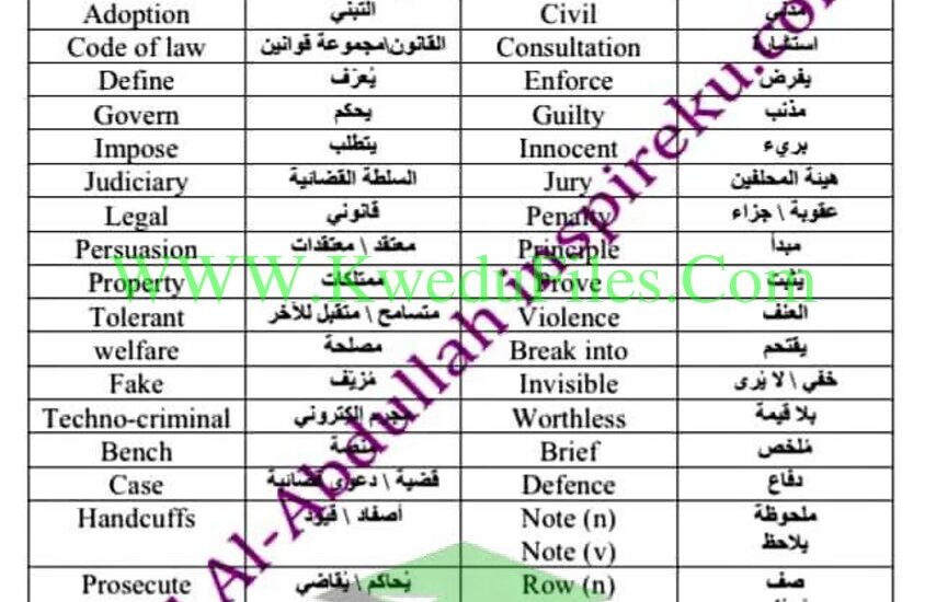 مذكرة كل كلمات الإنجليزي ثاني عشر فصل أول # كاملة