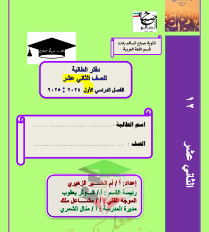 دفتر الطالب عربي ثاني عشر فصل أول # ثانوية صباح السالم