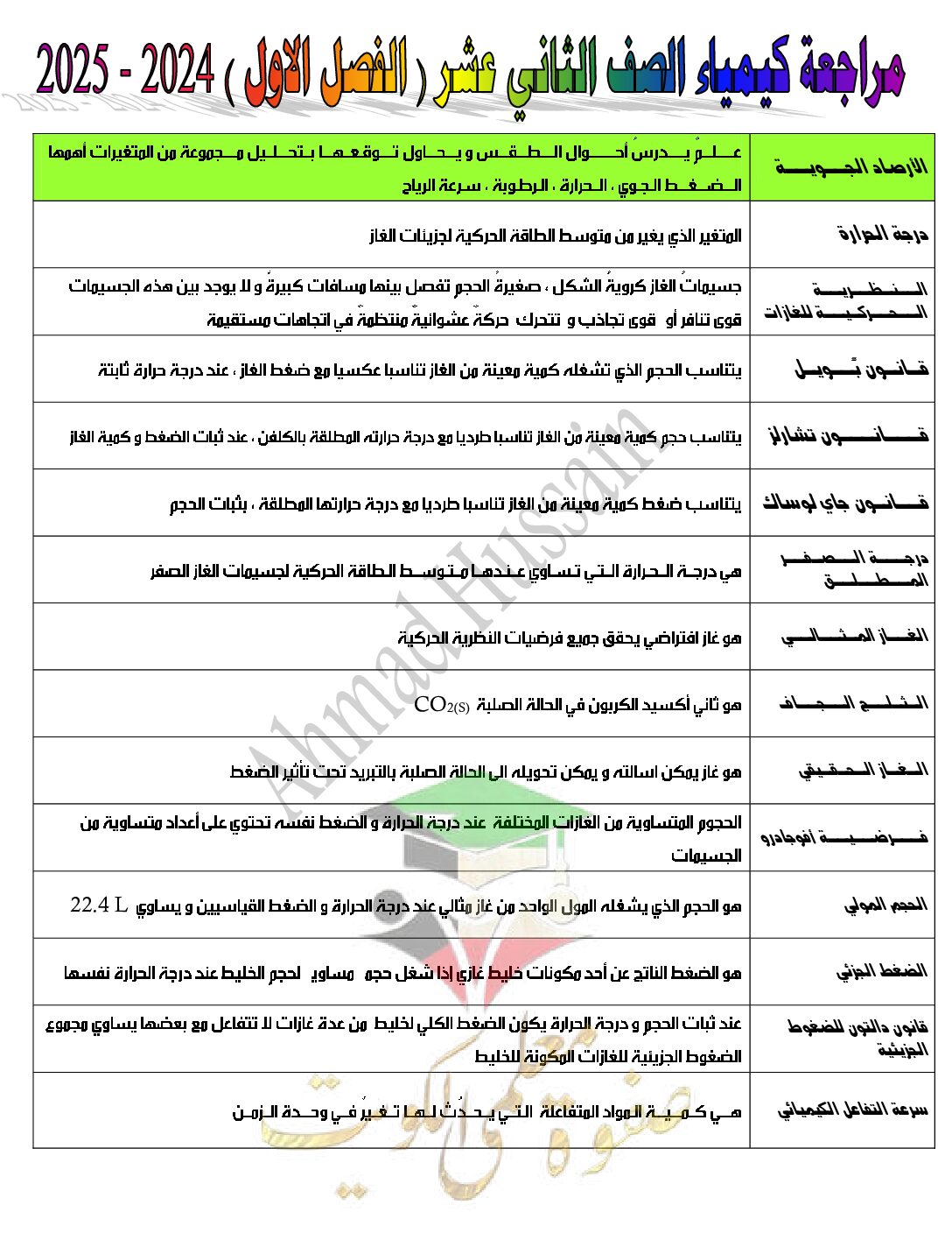 المراجعة النهائية كيمياء للصف الثاني عشر علمي الفصل الأول # محلولة