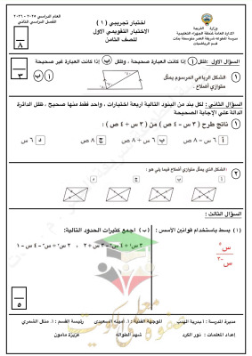 نماذج اختبارات تقييمي (1) || رياضيات || للصف العاشر || الفصل الثاني ( محلولة)