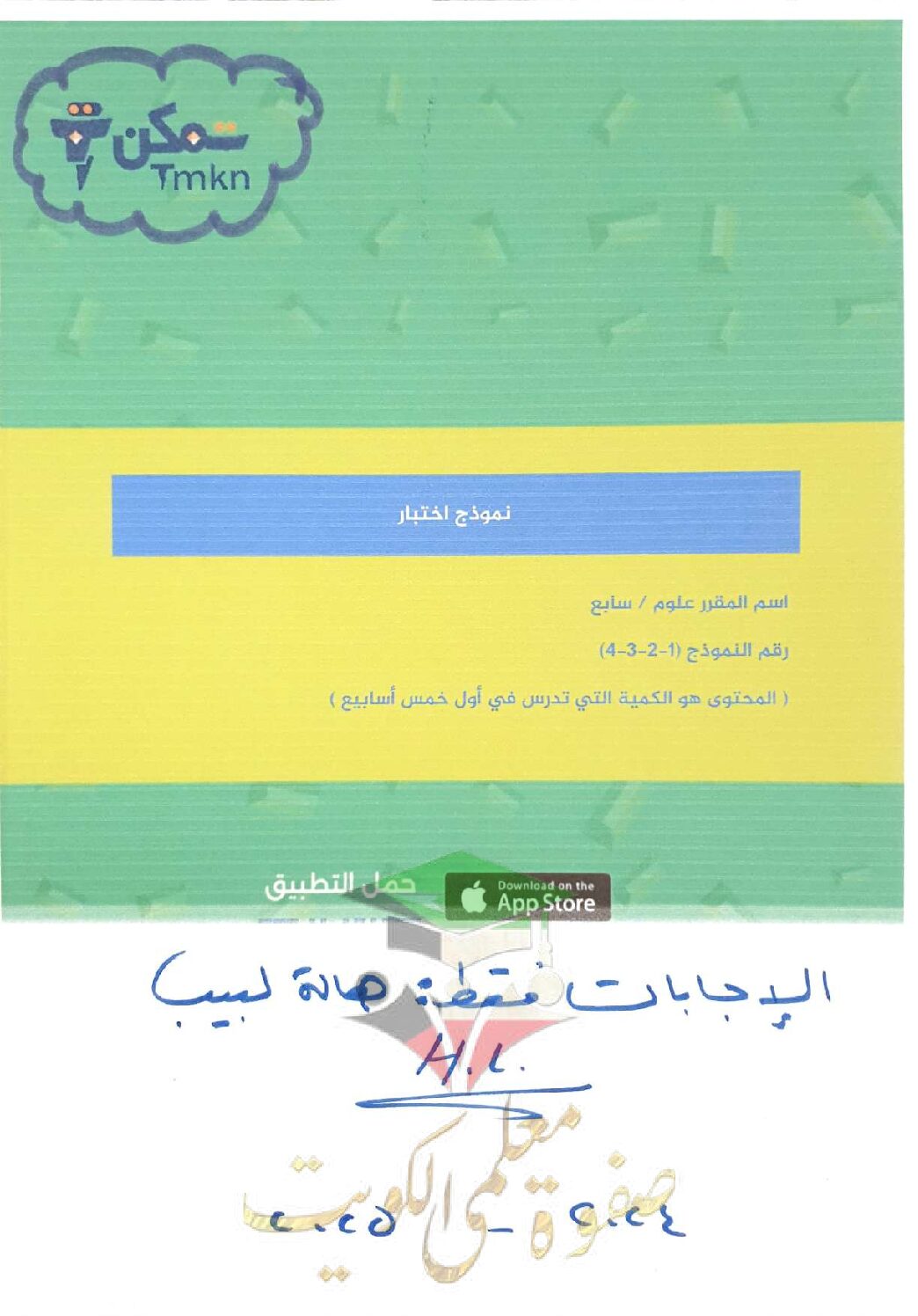 نماذج اختبار قصير علوم سابع فصل أول # نسخة محلولة